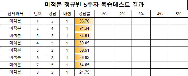 ■ 2027 김현우T 미적분 5주차 복습 테스트 채점결과