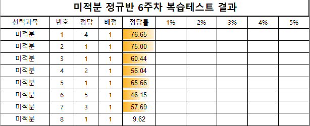 2027 김현우T 미적분 6주차 복습 테스트 채점결과