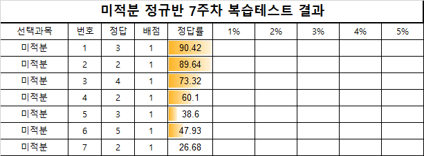 2027 김현우T 미적분 7주차 복습 테스트 채점결과